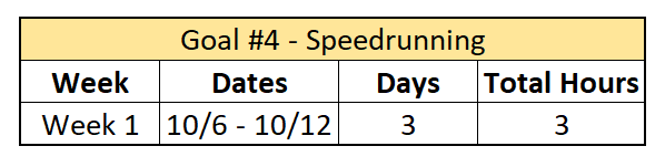 Goal #4 last week was to speedrun for an hour every weekday. That didn’t quite happen, but I did at least start my new project. I started learning Mega Man 4. I worked on speedrunning three of the five weekdays, twice for half an hour, and once for two hours. It feels like I should bump this goal down to the same half an hour per weekday that game dev has.