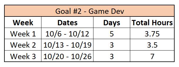 Game development is the goal that I feel the best about right now. I have a very real habit forming where I work on the game in the mornings. The week started a little slow, but the three days I worked on game development were Wednesday, Thursday and Friday. Notably, the hours were way up. I am having more fun with this lately.