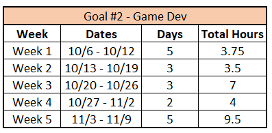 Last week was the best week in game development in a while. I am in a solid habit of doing ~2 hours in the mornings. Here’s the data:
