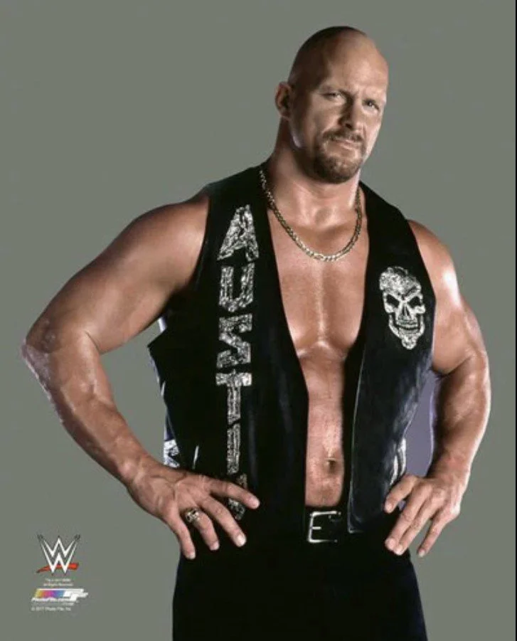 Here is a picture of Stone Cold Steve Austin, the WWE’s biggest babyface (aka the good guy that fans would cheer for) during the start of the Attitude Era (1997 - 2002).